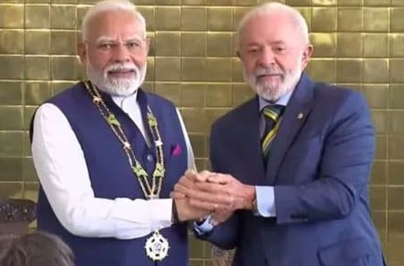 ప్రధాన మంత్రి నరేంద్ర మోదీకి మరో గొప్ప గౌరవం దక్కింది. ప్రస్తుతం బ్రెజిల్ పర్యటనలో ఉన్నారు మోదీ. అక్కడి అత్యున్నత పౌర పురస్కారాన్ని మోదీ అందుకున్నారు. బ్రెజిల్ అధ్యక్షుడు లూడా .. గ్రాండ్ కాలర్ ఆఫ్ ది నేషనల్ ఆర్డర్ ఆఫ్ ది సదరన్ క్రాస్ పురస్కారాన్ని మోదీకి ప్రదానం చేసారు. అంతకు ముందు జరిగిన బ్రిక్స్ శిఖరాగ్ర సదస్సులో మోదీ పాల్గొన్నారు. ఈ సందర్భంగా ప్రపంచం ఎదుర్కొంటున్న పరిస్థితులపై మాట్లాడారు. క్రిటికల్ మినరల్స్ ను ఏ దేశమూ సొంత ప్రయోజనాల కోసం వాడుకోకుండా అడ్డుకోవాలని పిలుపునిచ్చారు.